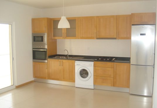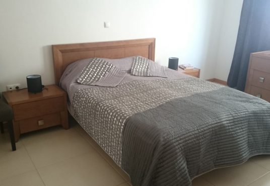 Apartamento composto por: dois quartos, duas casa de banho, sala/cozinha, com garagem (parking) para uma viatura